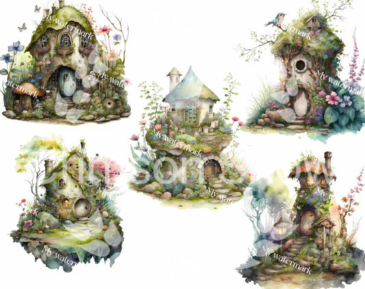 【paper】5 sheets A4 colorful BG paper-fairy house small for DIY craft